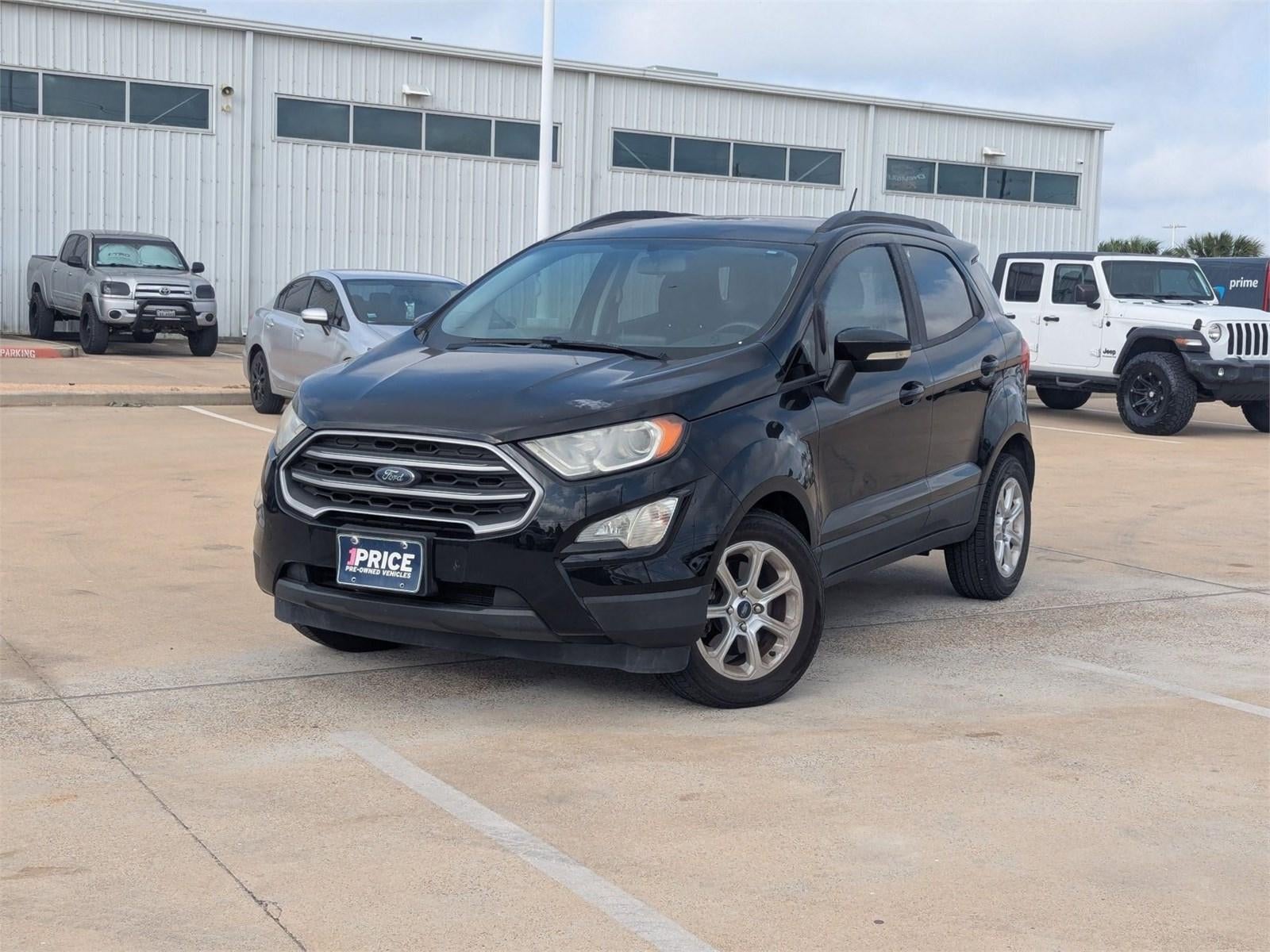 Contact Autonation Chevrolet Cadillac South Corpus Christi today for information on dozens of vehicles like this 2019 Ford EcoSport SE. This Ford includes: ENGINE: 1.0L ECOBOOST 3 Cylinder Engine Gasoline Fuel Turbocharged SHADOW BLACK TRANSMISSION: 6-SPEED AUTOMATIC W/SELECTSHIFT (STD) Transmission w/Dual Shift Mode A/T 6-Speed A/T FRONT LICENSE PLATE BRACKET EBONY BLACK, UNIQUE CLOTH HEATED FRONT BUCKET SEATS Cloth Seats Power Driver Seat Heated Front Seat(s) Driver Adjustable Lumbar Bucket Seats *Note - For third party subscriptions or services, please contact the dealer for more information.* If you're in the market for an incredible SUV -- and value on-the-road comfort and manners more than ultimate off-road prowess or tow capacity -- you'll definitely want to check out this Ford EcoSport SE. The EcoSport SE is well maintained and has just 31,380mi. This low amount of miles makes this vehicle incomparable to the competition. The 2019 Ford exterior is finished in a breathtaking Shadow Black, while being complemented by such a gorgeous Ebony Black interior. This color combination is stunning and absolutely beautiful!