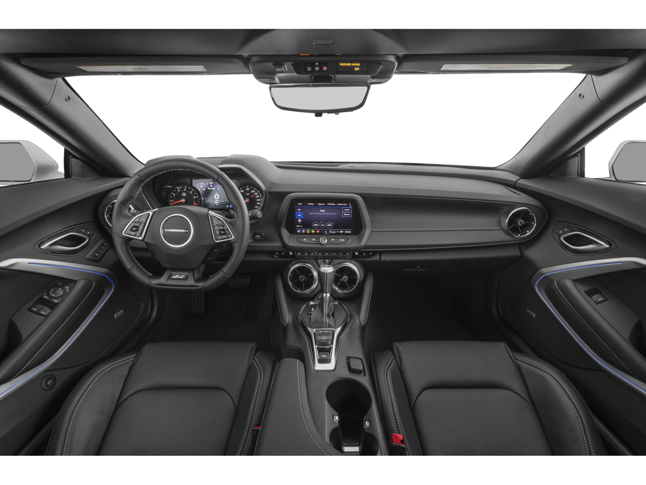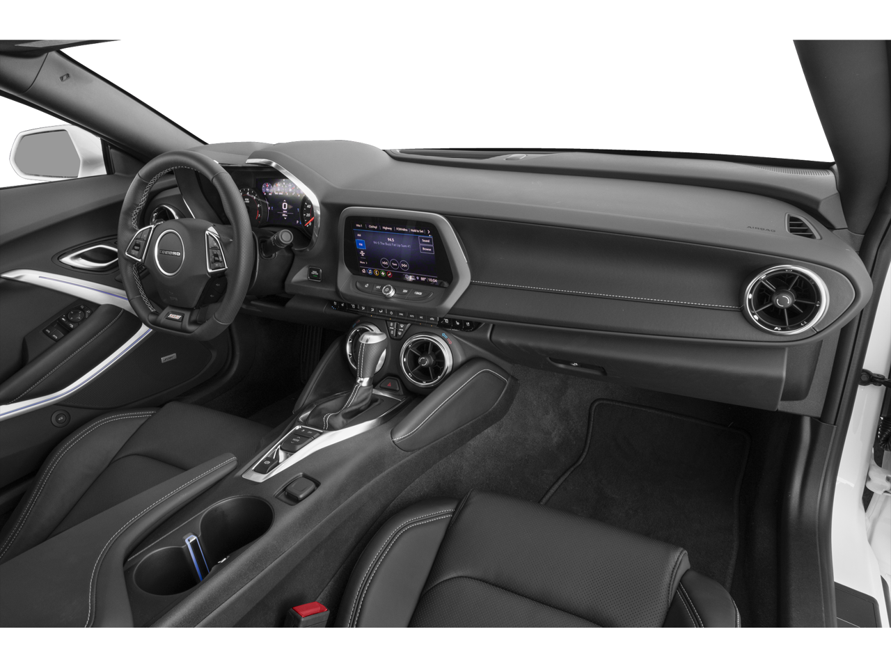 - Black interior with Ceramic White front seat inserts, door inserts and stitching on front seats, doors, steering wheel, shifter and center console