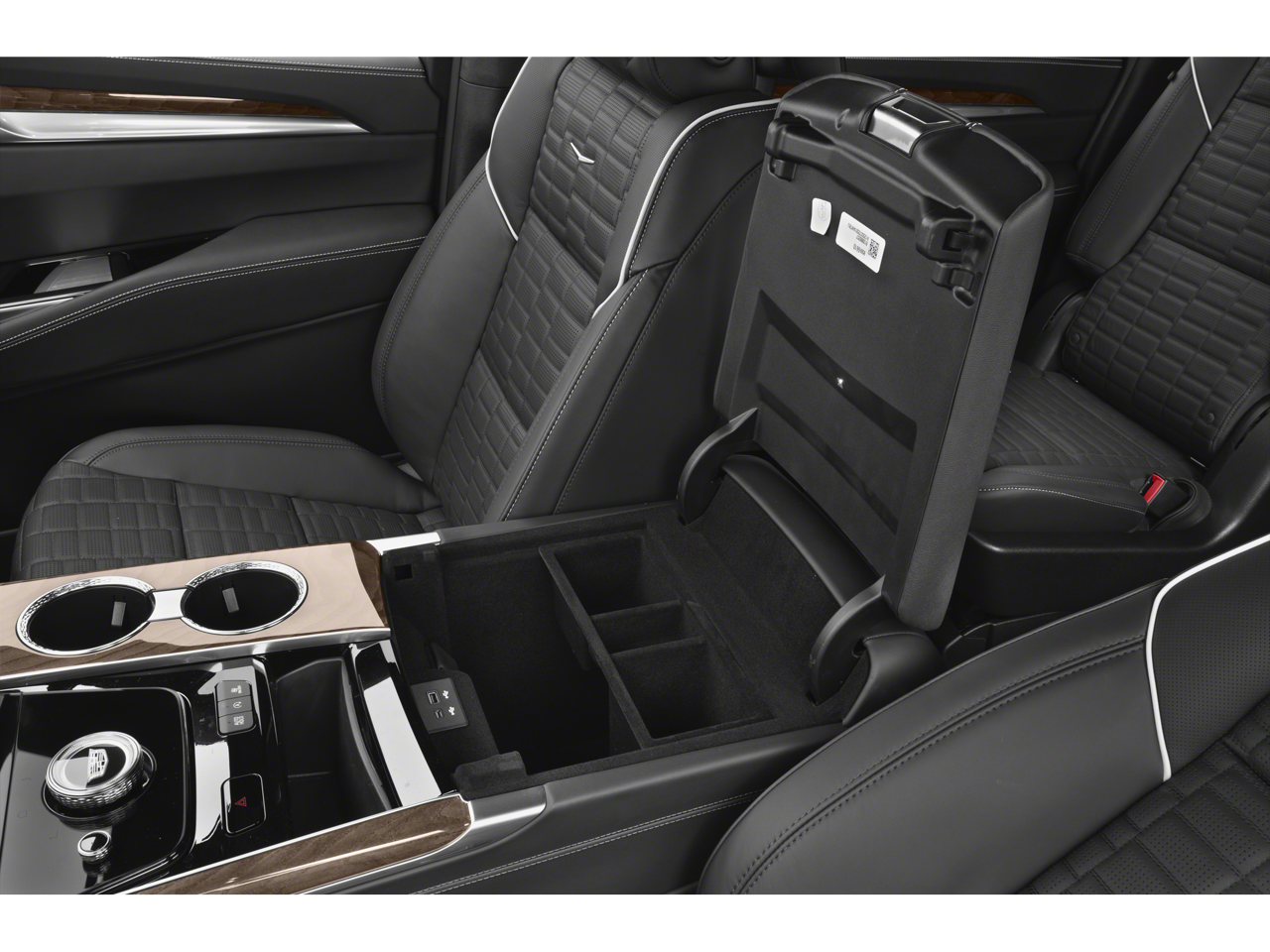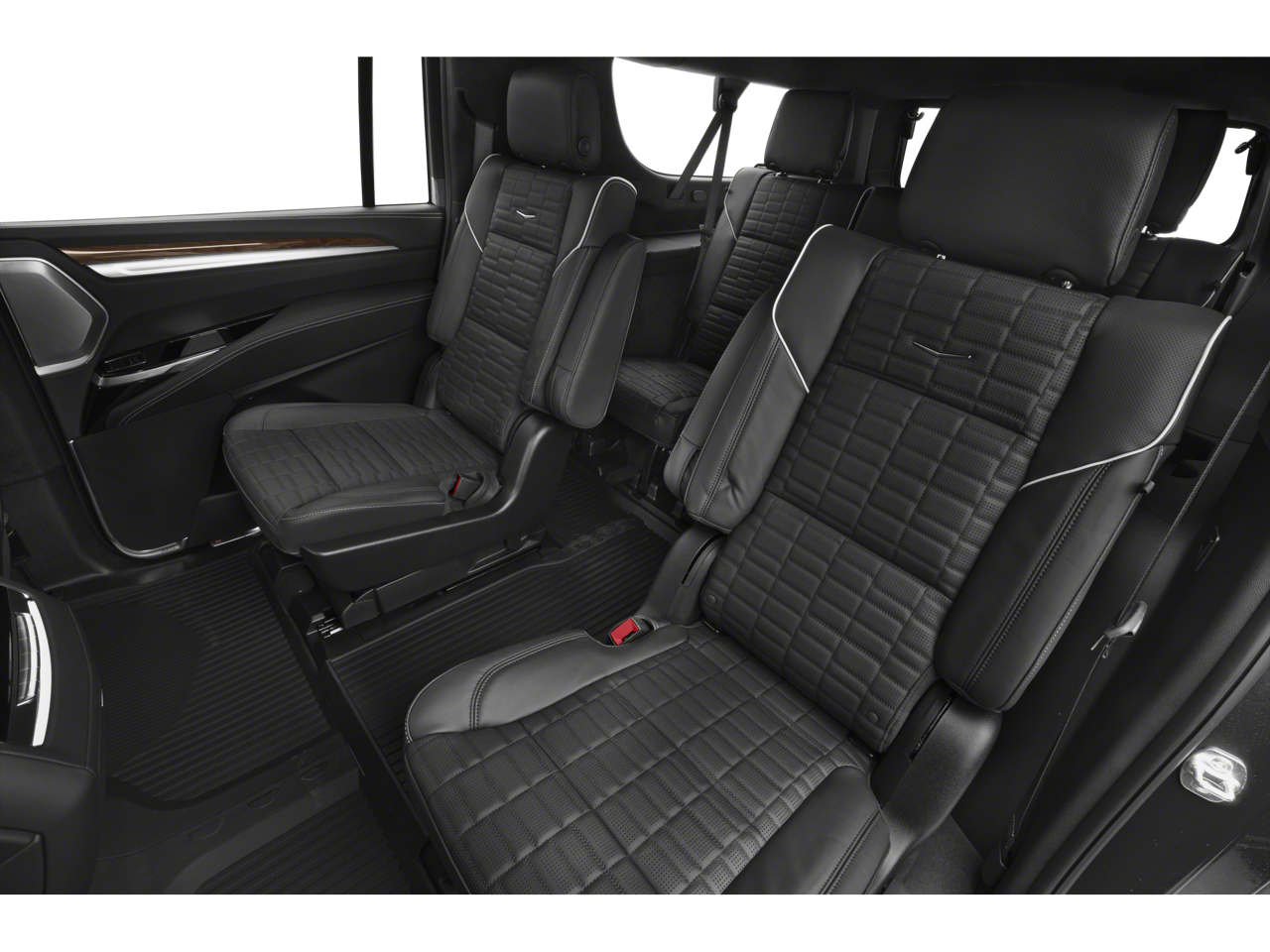 - Second row floor console with stowable tray tables